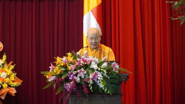 Thay mặt Hội đồng Điều hành Học viện, Hòa thượng Thích Thanh Quyết khái quát về chương trình đào tạo, báo cáo thành quả đạt được của công tác bảo trợ học đường trong năm 2025 và phương hướng hoạt động Phật sự trong năm 2026. Hòa thượng cho biết: “Hiện nay, Học viện có trên 800 Tăng Ni tu học, hoàn thiện các hệ thống đào tạo từ Cao đẳng đến Tiến sĩ nên đội ngũ giảng sư và Tăng Ni sinh rất cố gắng trong vai trò của mình. Trong năm 2025, Học viện đã nhận được sự phát tâm công đức của Phật tử các địa phương góp phần vào công tác giáo dục đào tạo của Giáo hội nói chung và Học viện nói riêng. Thầy trò Học viện tiếp tục cố gắng giảng dạy, tu học để hoàn thành chương trình học tập đã đề ra”.
