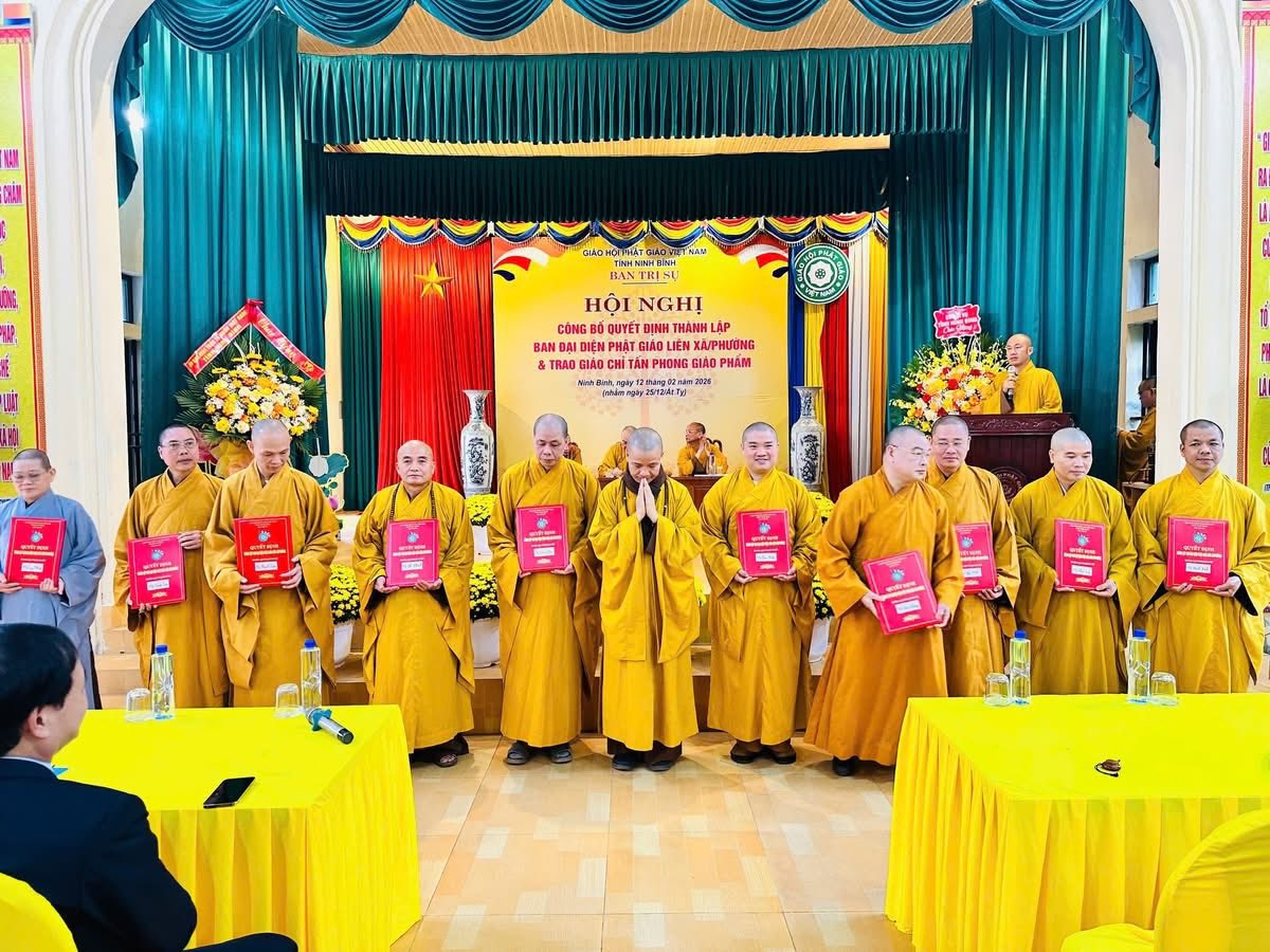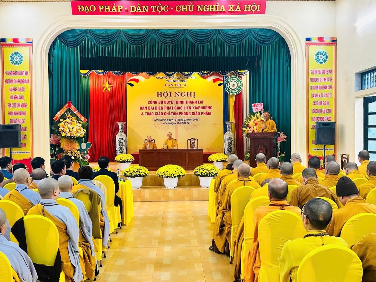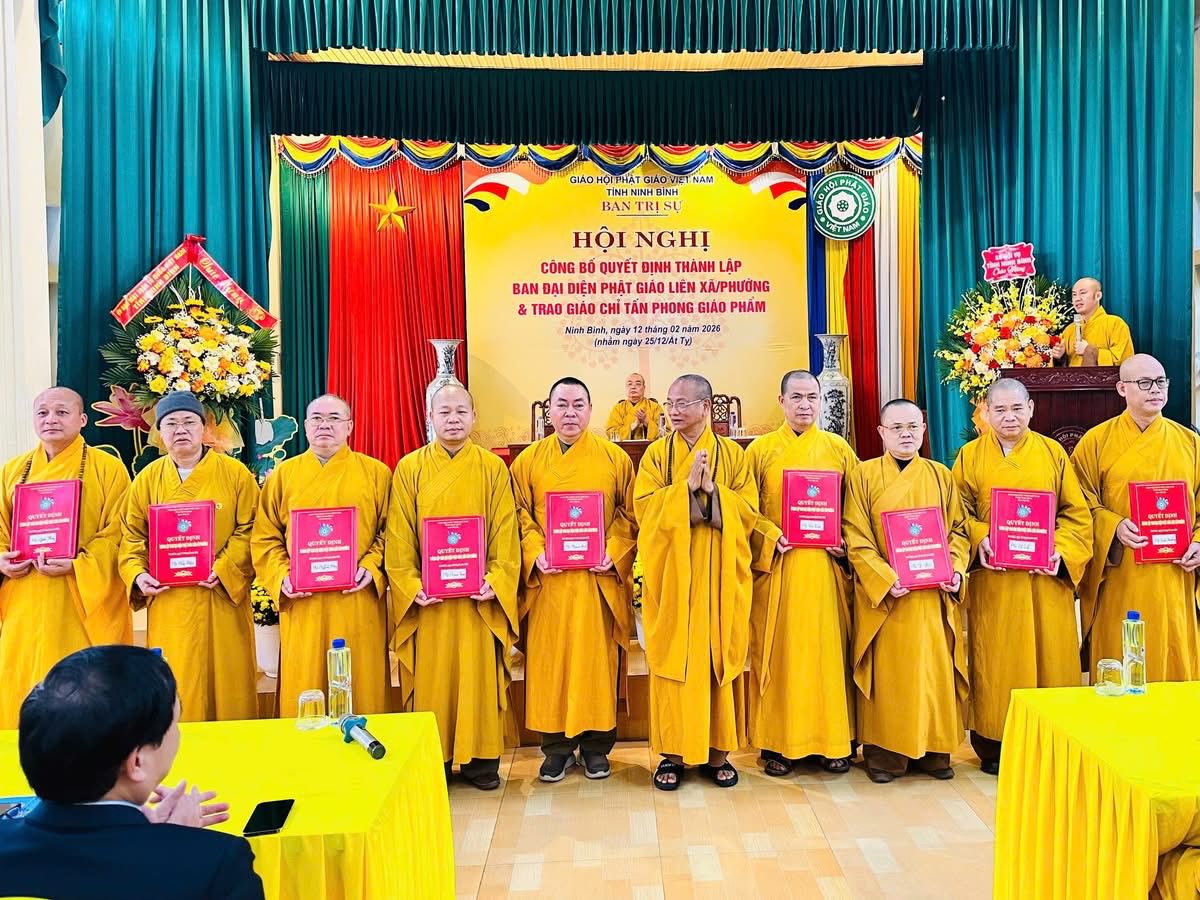 Chi tiết tin tức Ban Trị sự GHPGVN tỉnh Ninh Bình công bố quyết định thành lập Ban đại diện Phật giáo liên phường/xã, và trao Giáo chỉ tấn phong 21:46:00 - 12/02/2026