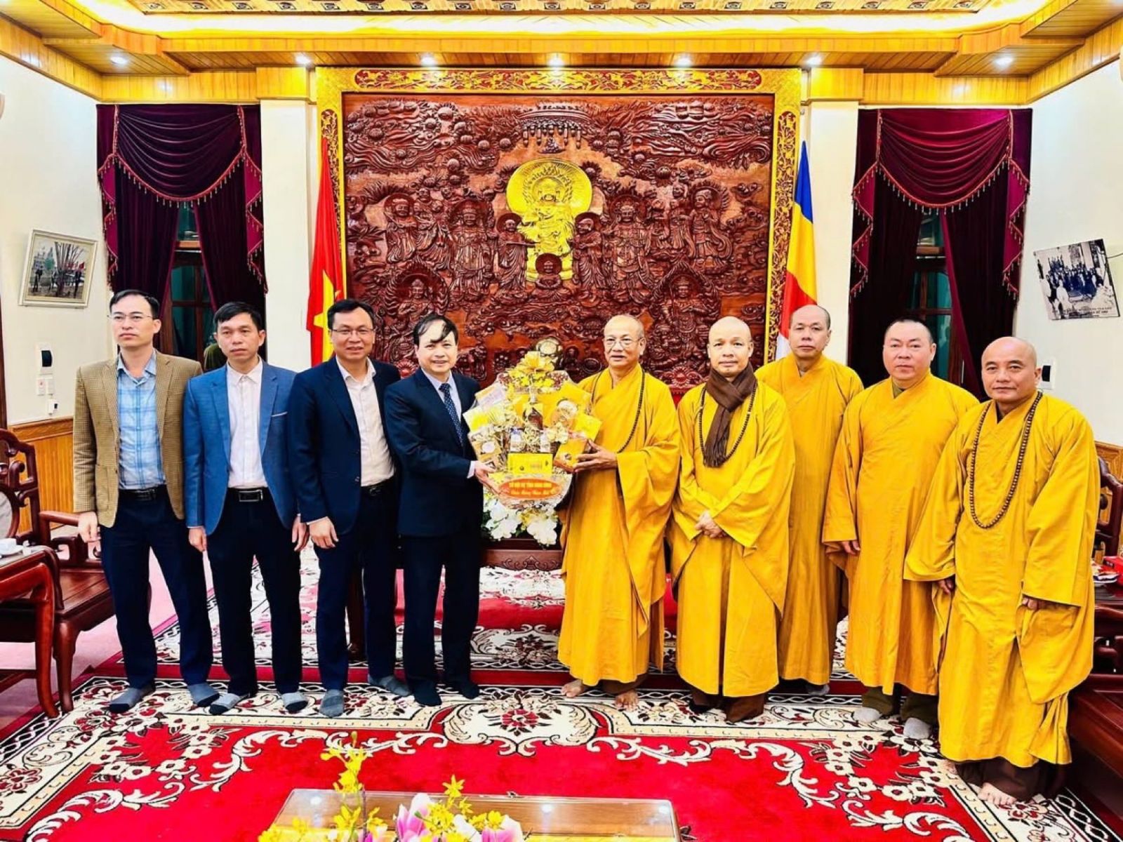 Trong sáng cùng ngày, lãnh đạo Ủy ban MTTQ Việt Nam tỉnh và Sở Nội vụ tỉnh Ninh Bình đã đến thăm, chúc Tết Ban Trị sự GHPGVN tỉnh. Tại buổi gặp mặt, lãnh đạo các cơ quan đã gửi lời chúc mừng năm mới an khang, thịnh vượng đến chư tôn đức Tăng Ni, Phật tử trong tỉnh; đồng thời ghi nhận và đánh giá cao những đóng góp tích cực của Phật giáo tỉnh nhà trong công tác an sinh xã hội, xây dựng nông thôn mới, đô thị văn minh và củng cố khối đại đoàn kết toàn dân tộc.