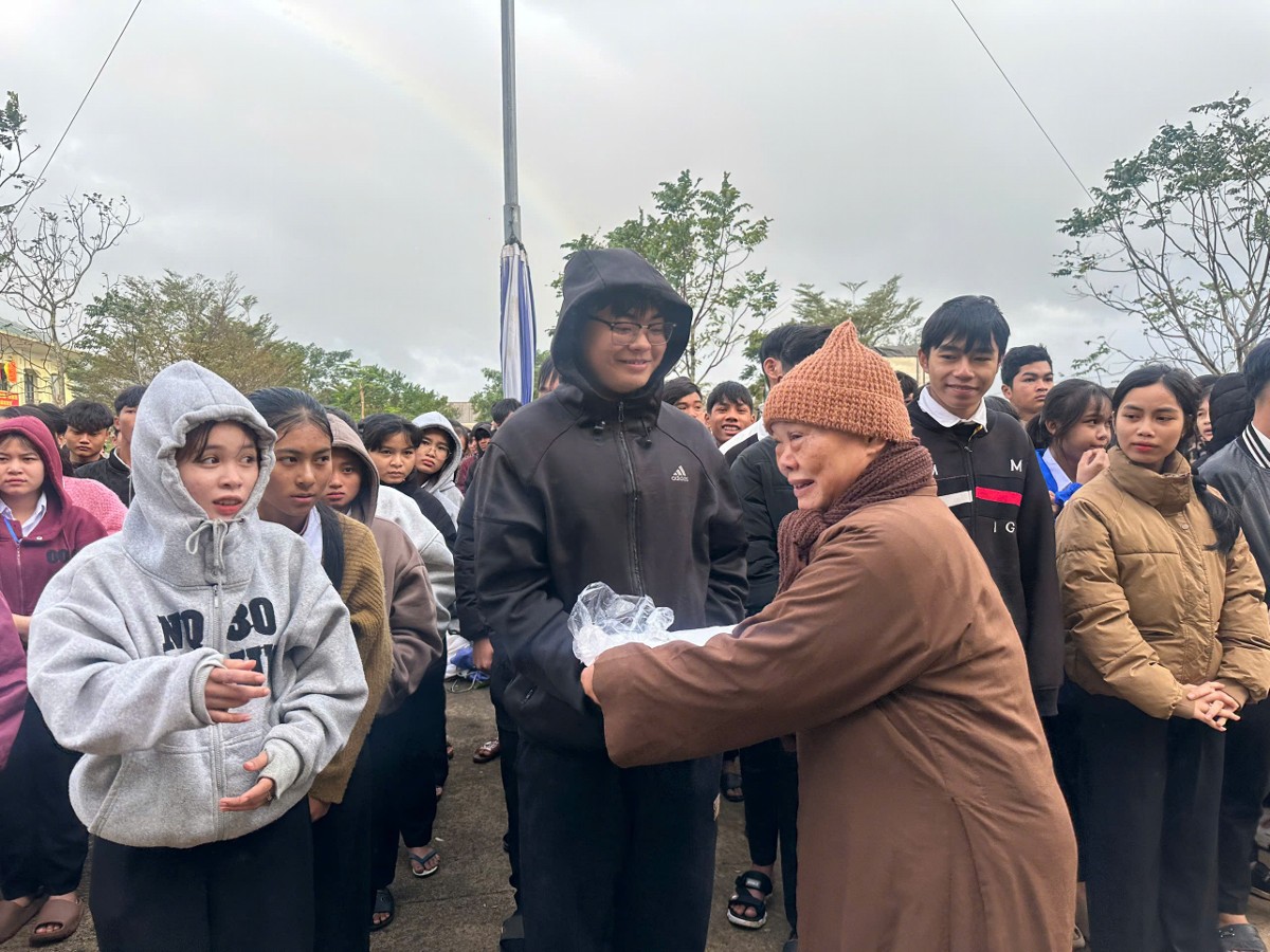 Đại diện nhà trường đã bày tỏ lòng tri ân sâu sắc trước sự quan tâm của Ni trưởng cùng quý Phật tử, đồng thời cho biết đây là nguồn động viên rất lớn đối với thầy và trò nơi vùng núi biên giới Hướng Hóa. Tiếp nối chương trình, đoàn đã đến chùa Anh Quang (Niệm Phật đường Hòa Viện), thuộc thôn Hòa Viện, xã Phong Bình, huyện Phong Điền (cũ), TP. Huế, để trao 150 suất quà cho các hộ gia đình có hoàn cảnh khó khăn trên địa bàn. Trong không khí ấm áp nghĩa tình, những phần quà được trao tận tay bà con, góp phần giúp người dân ổn định đời sống, vượt qua những khó khăn trong sinh hoạt hằng ngày.