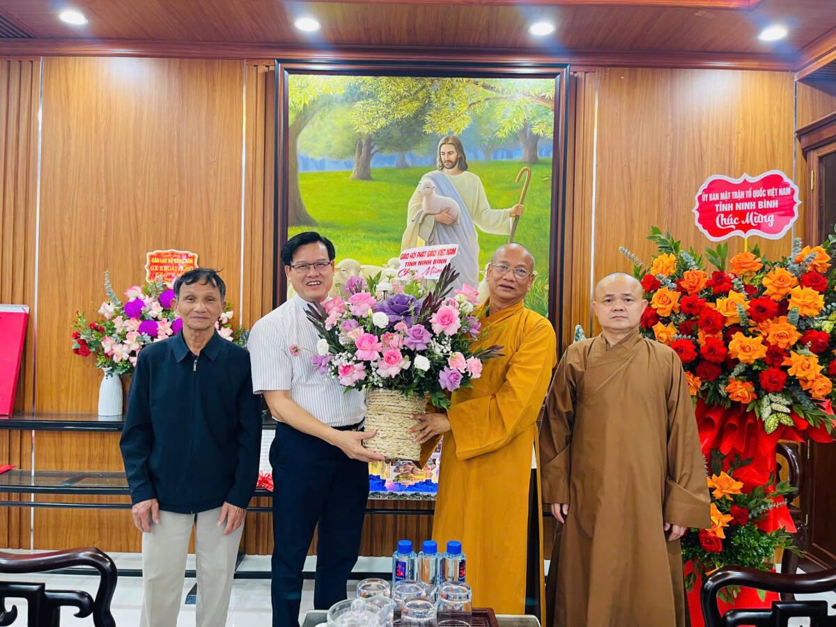 Dẫn đầu phái đoàn là Hòa thượng Thích Quảng Hà – Phó Chủ tịch HĐTS, Trưởng Ban Trị sự GHPGVN tỉnh Ninh Bình, đã đến thăm và chúc mừng Tổng Giám mục Bùi Chu Xuân Trường, Nhà thờ Lớn; đồng thời thăm Uỷ ban Đoàn kết Công giáo và Nhà thờ Khoái Đồng. Cùng tham gia đoàn có chư Tôn đức đại diện Ban Trị sự GHPGVN tỉnh.