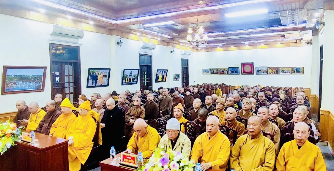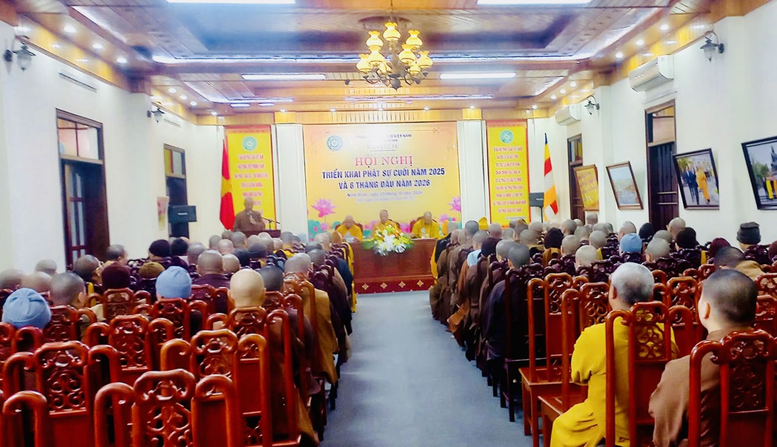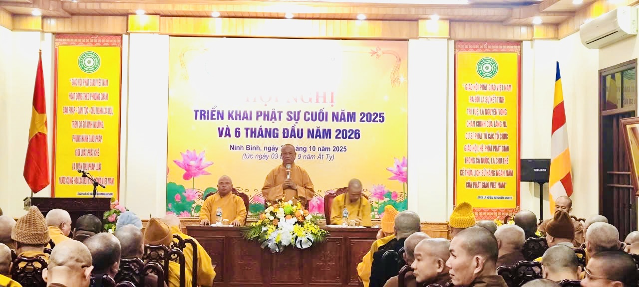 Quang cảnh hội nghị Chứng minh và tham dự hội nghị có Hoà thượng Thích Thanh Lương, Hoà thượng Thích Thanh Nghị, đồng thành viên HĐCM TƯ GHPGVN, Chứng minh BTS GHPGHVN tỉnh; Chủ trì hội nghị là Hoà thượng Thích Quảng Hà, Phó Chủ tịch HĐTS, Trưởng BTS GHPGVN tỉnh; Thượng toạ Thích Minh Quang, Thượng toạ Thích Thiện Hưởng, chư tôn đức Phó BTS GHPGVN tỉnh, và chư Tôn đức Tăng Ni trong BTS GHPGVN tỉnh Ninh Bình. Hoà thượng Thích Quảng Hà phát biểu khai mạc Phát biểu khai mạc hội nghị, Hoà thượng Thích Quảng Hà đã ân cần gửi lời thăm hỏi tới chư Tôn đức Tăng Ni với những lời chúc tốt đẹp và thành công mọi công tác Phật sự. Sau thời gian 113 ngày vừa qua, sau sáp nhập ba tỉnh Hà Nam, Nam Định và Ninh Bình, mọi công tác Phật sự, phụng đạo yêu nước, đã được chư Tăng Ni, Phật tử tỉnh nhà hoạt động hết sức nỗ lực, đạt được nhiều kết quả tốt đẹp. Đặc biệt là việc tổ chức các đoàn lãnh đạo Ban Trị sự Phật giáo tỉnh đi thăm các trường hạ trong toàn tỉnh. Điều này để lại nhiều ấn tượng tốt đep trong Tăng Ni. Hoà thượng mong muốn chư Tăng Ni, Phật tử tỉnh nhà tiếp tục nỗ lực hơn nữa trong việc tu tập và hành trì đạo pháp, xây dựng khối đại đoàn kết toàn dân, tích cực tham gia vào các phong trào, hoạt động ích nước, lợi dân. Nhất là việc hướng tới Đại hội đại biểu Phật giáo tỉnh nhà vào đầu năm 2026, Hoà thượng Thích Quảng Hà nhấn mạnh. Chư Tăng Ni tham dự hội nghị Theo báo cáo cho biết, toàn tỉnh Ninh Bình có 1828 Tăng Ni; có 1735 ngôi chùa. Trong kỳ an cư kết hạ năm 2025 có 1115 Tăng Ni tham gia an cư tại 15 trường hạ trong toàn tỉnh. Các khoá tu mùa hè năm nay đã thu hút trên 5000 bạn trẻ tham gia. Công tác từ thiện xã hội với số tiền hơn 6 tỷ đồng. Ủng hộ đồng bào địa phương và các địa phương khác bị ảnh hưởng bởi bão lũ vừa qua; chuognw trình tiếp bước em đến trường, xây nhà tình nghĩa, nồi cháo tình thương... Công tác đón tiếp các đoàn lãnh đạo các nước; các vị lãnh đạo Đảng, Nhà nước, Chính phủ và tỉnh Ninh Bình đến làm việc và chúc mừng tại trụ sở Giáo hội, chùa Baí Đính, chùa Tam Chúc... Các hoạt động văn hoá, nghi lễ Phật giáo được chú trọng với hình thức tổ chức Đại lễ Phật đản, Vu Lan, Phật thành đạo... ngày càng được đổi mới về hình thức và nội dung, thu hút nhiều tầng lớp nhân dân tham gia. Chư tôn đức lắng nghe các ý kiến phát biểu Trong thời gian tới Ban Trị sự Phật giáo tỉnh tiếp tục củng cố bộ máy tổ chức, phát huy vai trò, trách nhiệm 3 văn phòng, các ban, ngành trực thuộc, thống nhất thành lập Ban đại diện Phật giáo liên xã/phường tạo điều kiện kết nối Tăng Ni và tổ chức các hoạt động Phật sự tại địa phương; Đẩy mạnh công tác Tăng sự và giáo dục Phật giáo, nâng cao chất lượng tu học, quản lý cơ sở tự viện, mở thêm các trường hạ đáp ứng nhu cầu tu học, tạo điều kiện thuận lợi trong việc đi lại, sinh hoạt của Tăng Ni trên địa bàn; Tăng cường công tác hoằng pháp hiện đại bằng công nghệ thông tin, mạng xã hội...;Đẩy mạnh công tác từ thiện xã hội, lan toả những hình ảnh tốt đẹo của Phật giáo; Hướng tới công tác chuẩn bị mọi điều kiện tốt nhất về nhân sự, thời gian, địa điểm và các điều kiện tổ chức Đại hội đại biểu Phật giáo tỉnh Ninh Bình nhiệm kỳ 2026-2031. Trong hội nghị này, đại chúng được nghe nhiều ý kiến phát biểu xây dựng Phật giáo tỉnh Ninh Bình ngày càng phát triển của Tăng Ni các cơ sở địa phương. Hội nghị trong tinh thần đoàn kết và đồng thuận cao trong phương hướng hoạt động 6 tháng đầu năm 2026 Phát biểu đúc kết hội nghị, Hoà thượng Thích Quảng Hà kêu gọi Tăng Ni tỉnh nhà cố gắng làm nhiều việc lợi đạo, ích đời hơn nữa để dâng lên chào mừng Đại hội đại biểu Phật giáo tỉnh Ninh Bình, dự kiến được tổ chức vào đầu tháng 4 năm 2026. Tiếp tục hưởng ứng và tham gia các phong trào tại địa phương. Đặc biệt là phong trào xây dựng chùa Tinh tiến đạt kết quả cao. Điều này góp phần chung vào nhiệm vụ phát triển kinh tế, văn hoá, xã hội, an ninh, quốc phòng của địa phương, Hoà thượng Thích Quảng Hà nhấn mạnh.