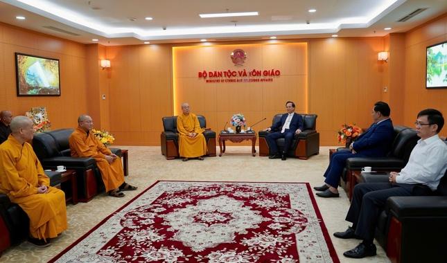 Tại buổi tiếp, Bộ trưởng Bộ Dân tộc và Tôn giáo Đào Ngọc Dung đánh giá cao sự lãnh đạo của GHPGVN trong thực hiện thành tựu các hoạt động Phật sự. Đặc biệt, lãnh đạo Bộ Dân tộc và Tôn giáo ghi nhận năm 2025 là một năm khởi sắc khi GHPGVN đã hoàn tất việc sắp xếp bộ máy Giáo hội đồng bộ, nhanh chóng và hiệu quả sau khi sáp nhập. Nhiều hoạt động của Giáo hội đã để lại dư âm tốt đẹp trong xã hội, nổi bật nhất là dấu ấn đối ngoại, tổ chức thành công Đại lễ Vesak Liên Hiệp Quốc 2025, nâng cao uy tín của Phật giáo Việt Nam trên trường quốc tế. Thời gian qua, GHPGVN đã đóng góp tích cực vào chương trình xóa nhà tạm, nhà dột nát, xây dựng hàng nghìn căn nhà đại đoàn kết, thể hiện sự gắn bó mật thiết giữa đạo với đời.