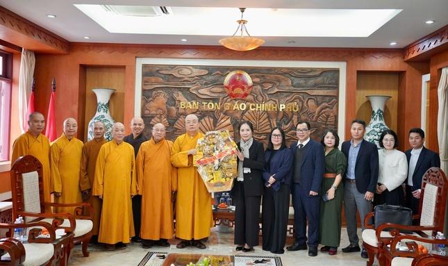 Lãnh đạo Bộ Dân tộc và Tôn giáo khẳng định sẽ quan tâm, ủng hộ và phối hợp chặt chẽ trong việc hướng dẫn Giáo hội chuẩn bị cho Đại hội đại biểu Phật giáo toàn quốc. Thay mặt lãnh đạo Đảng và Nhà nước, Bộ trưởng Bộ Dân tộc và Tôn giáo trân trọng cảm ơn sự phối hợp của Hội đồng Trị sự trong các hoạt động phụng sự xã hội; chúc mừng năm mới đến chư tôn đức giáo phẩm GHPGVN, cùng toàn thể Tăng Ni, Phật tử cả nước đón Xuân Bính Ngọ 2026 mạnh khỏe và an lạc. * Tại Ban Tôn giáo Chính phủ, bà Trần Thị Minh Nga, Phó Trưởng ban Tôn giáo Chính phủ; ông Cát Ngọc Trình, Trưởng phòng Phật giáo ban Tôn giáo Chính phủ và các chuyên viên Ban Tôn giáo Chính phủ thân mật đón tiếp phái đoàn.