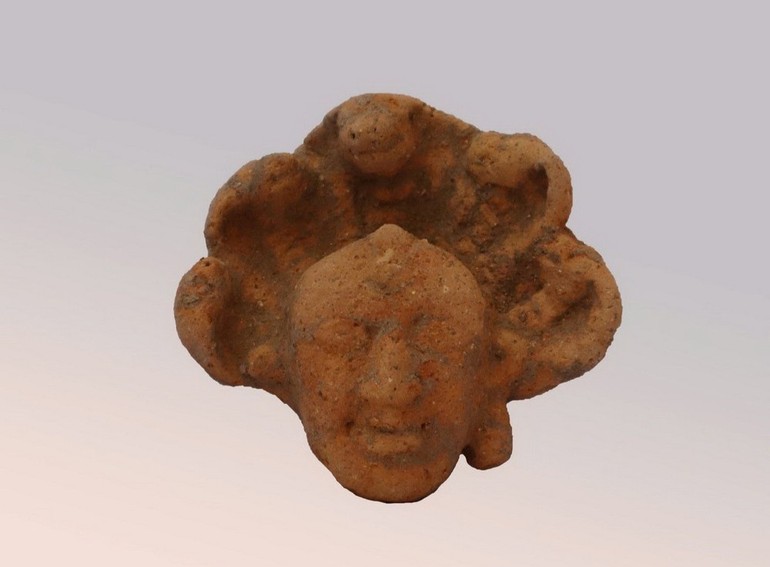 Mặt trước đầu tượng Phật Linh Sơn Bắc - Ảnh: Cổng thông tin điện tử tỉnh An Giang Đầu tượng Phật Linh Sơn Bắc được phát hiện tại di tích Linh Sơn Bắc trong lớp văn hóa đặc trưng kéo dài nhiều thế kỷ, nơi tích tụ dày đặc dấu tích kiến trúc tôn giáo. Tượng đất nung khắc họa Đức Phật với vòm rắn Naga 5 đầu che phía sau - biểu tượng đặc trưng của mỹ thuật Phật giáo chịu ảnh hưởng Ấn Độ, cho thấy sự giao thoa văn hóa - tôn giáo mạnh mẽ của cư dân Óc Eo cổ.