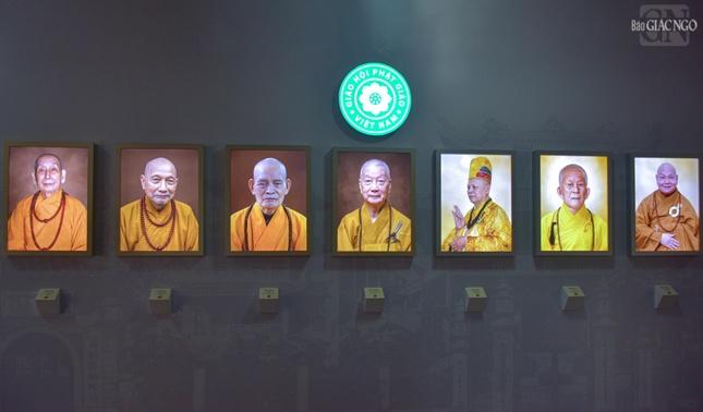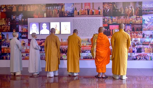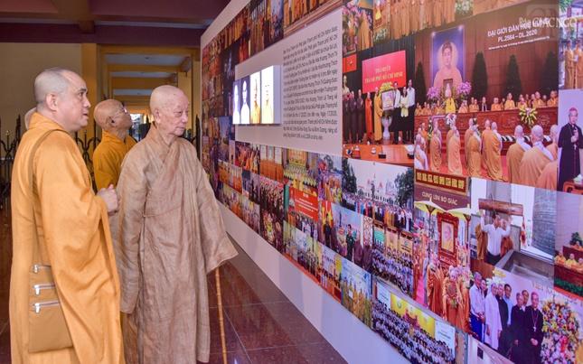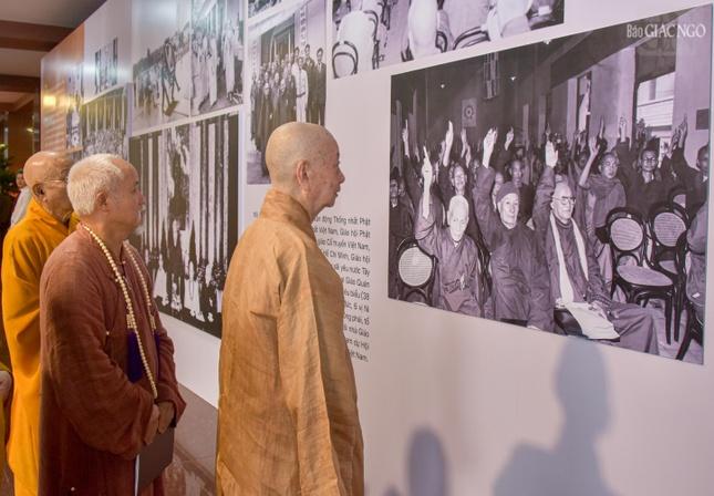 Triển lãm được thể hiện qua 17 mảng đề tài: Bắt đầu bằng chân dung chư vị lãnh đạo tối cao của Giáo hội cũng như tư liệu quan trọng có giá trị đồng đại với sự kiện lịch sử: Hội nghị Thống nhất thành lập GHPGVN; Những cuộc gặp gỡ lịch sử giữa các bậc tôn túc với các vị lãnh đạo cấp cao của Đảng, Nhà nước; Dấu ấn 9 kỳ Đại hội; Thành tựu, cương lĩnh của các lĩnh vực quan trọng như Tăng sự, Hoằng pháp, Văn hóa, Hướng dẫn Phật tử, Nghi lễ, Giáo dục, Từ thiện xã hội, Đại tạng kinh VN, Ni giới… Triển lãm cũng giới thiệu quá trình hình thành và phát triển của Phật giáo TP.HCM - một trung tâm không chỉ quan trọng đối với đất nước mà cả đối với tôn giáo, như lời khẳng định của cố Đại lão Hòa thượng Thích Trí Thủ - Đệ nhất Chủ tịch Hội đồng Trị sự trong đạo từ tại Đại hội thành lập Ban Trị sự Phật giáo TP.HCM tháng 6-1982: "Tầm vóc của TP.HCM, về cơ cấu nhân sự và tính chất tiêu biểu của nó đại diện cho sự thống nhất của cả miền Nam; sự thành công của Phật giáo Thành phố không chỉ cho riêng Thành phố mà ảnh hưởng tới cả miền Nam…".
