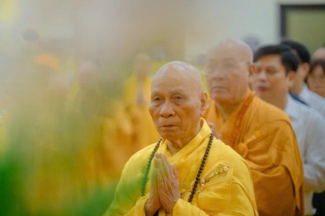 | Trưởng lão Hòa thượng Thích Thiện Nhơn đọc lời tưởng niệm của Trung ương Giáo hội |