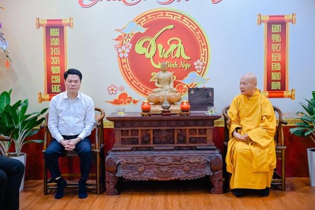 Cùng ngày, Thiếu tướng Nguyễn Hữu Mạnh và phái đoàn lãnh đạo Cục An ninh nội địa – Bộ Công an cũng đã đến thăm, chúc Tết Trưởng lão Hòa thượng Thích Thiện Nhơn, Phó Pháp chủ Hội đồng Chứng minh, Chủ tịch Hội đồng Trị sự GHPGVN. Đức Văn - Ảnh: Bảo Toàn