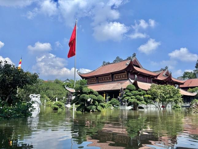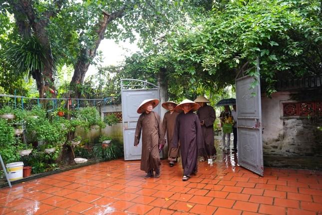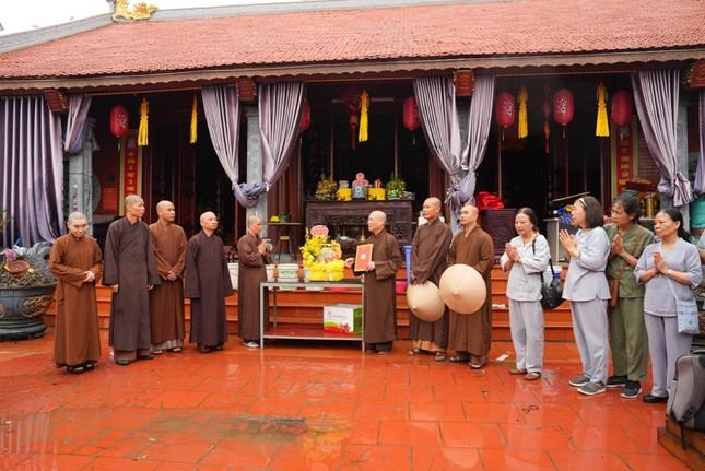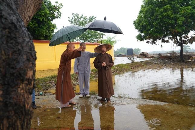 Cùng đi với đoàn có chư tôn đức trong Ban Đại diện khu vực và đại diện Phật tử Đạo tràng Pháp Hoa miền Bắc. Theo đó, đoàn đã đến xã Trung Giã và Đa Phúc (huyện Sóc Sơn cũ) để thăm những ngôi chùa chỉ mấy ngày trước đây còn ngập sâu trong biển nước, như: chùa Vạn Phúc, Thụy Hương, Phúc Nghiêm, Phúc Khánh, Quan Âm, An Lạc, Thiên Minh và chùa Ngộ Đạo. Tại chùa Vạn Phúc, Thượng tọa trụ trì Thích Chiếu Tuệ cho biết do chịu ảnh hưởng trực tiếp của bão lũ, nước dâng ngập sâu khắp khuôn viên, những ngày qua, chư Tăng và Phật tử vẫn ngày đêm khắc phục hậu quả, thu dọn từng viên gạch, từng pho tượng bị bùn phủ lấp. Hòa thượng Thích Bảo Nghiêm đã ân cần khích lệ đại chúng giữ vững tâm Bồ-đề, tinh tấn vượt qua khó khăn, sớm ổn định sinh hoạt tu học.