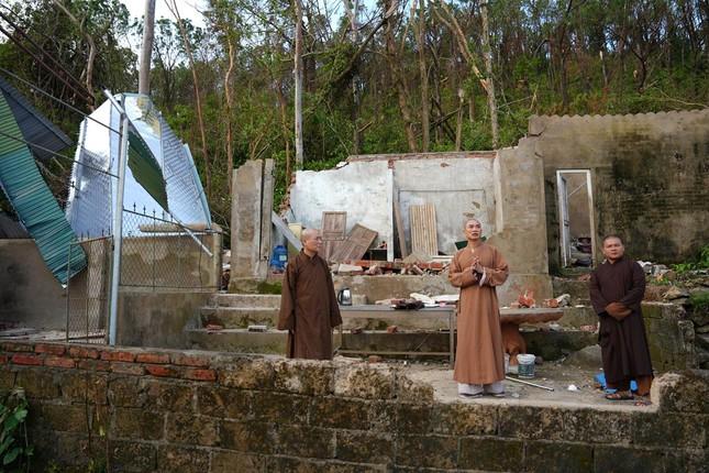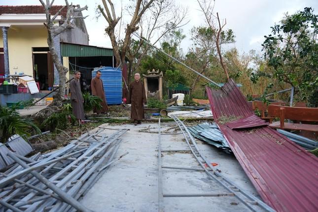 Cơn bão số 10 đi qua, để lại sau lưng nó là cảnh tượng tan hoang: mái chùa tốc ngói, gạch đá ngổn ngang; những pho tượng Phật nghiêng ngả, nứt vỡ; những quyển kinh, tập sách bị ướt sũng; hoa viên vốn thanh tịnh nay chỉ còn lại bùn đất và cành cây gãy đổ. Chùa vốn là mái nhà tâm linh, là nơi nương tựa tinh thần cho bà con Phật tử, nay cũng chung cảnh ngộ “mái xiêu, vách nát” cùng dân lành. Trong hoàn cảnh khốn khó ấy, sự hiện diện động viên khích lệ của Hòa thượng Thích Bảo Nghiêm cùng chư tôn đức trong Ban Trị sự Phật giáo tỉnh nhà đã mang đến niềm an ủi lớn lao. Những phần quà được trao gửi không chỉ là sự hỗ trợ vật chất, mà còn là biểu hiện của tình pháp lữ, của tâm nguyện hộ trì Tam bảo, giữ vững niềm tin cho Tăng Ni và Phật tử giữa bão giông cuộc đời. Một số hình ảnh ghi nhận: Chùa Kim Linh Sơn (xã Cổ Đạm)