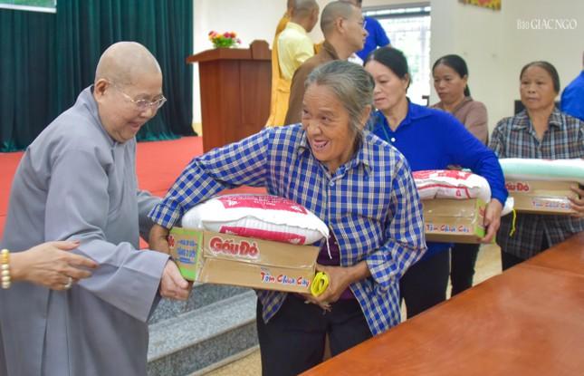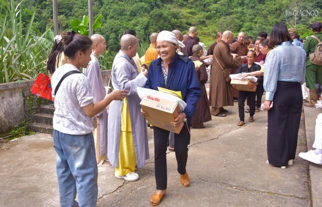 Tham dự chuyến từ thiện có Thượng tọa Thích Tuệ Hải, Phó Trưởng ban Kinh tế - Tài chính T.Ư, Phó ban Từ thiện xã hội T.Ư kiêm Trưởng Phân ban cứu trợ nhân đạo, trụ trì chùa Long Hương (Đồng Nai); Đại đức Thích Minh Đạo, Ủy viên Hội đồng Trị sự, Phó ban Kinh tế - Tài chính T.Ư; Ni trưởng Thích nữ Từ Nhẫn, Phó trưởng Phân ban Ni giới T.Ư, Trưởng phân ban Ni giới GHPGVN TP.HCM; các thành viên Ban Kinh tế - Tài chính T.Ư, Ban Từ thiện xã hội T.Ư, Ban Từ thiện xã hội Phật giáo TP.HCM, nhóm Chia sẻ Sharing của bà Mai Thị Hạnh - phu nhân nguyên Chủ tịch nước Trương Tấn Sang, nhóm Mãi yêu thương và Phật tử chùa Long Hương. Phát biểu tại buổi trao quà, Thượng tọa Thích Tuệ Hải đại diện Thượng tọa Thích Thanh Phong, Phó Chủ tịch Hội đồng Trị sự, Trưởng ban Kinh tế - Tài chính T.Ư, Trưởng ban Từ thiện xã hội Phật giáo TP.HCM cho biết đây là ngày đầu tiên của chương trình từ thiện do Trung ương GHPGVN kết hợp các doanh nghiệp, mạnh thường quân tổ chức trao quà đến bà con bị ảnh hưởng bởi cơn bão số 10 và 11 vừa qua. "Chương trình sẽ trao tặng 7.000 phần quà đến người dân các tỉnh Cao Bằng, Thái Nguyên, Thanh Hóa, Nghệ An, Hà Tĩnh và Quảng Trị bị ảnh hưởng bởi cơn bão số 10 và 11 vừa qua, giúp họ khắc phục thiệt hại và sớm ổn định lại cuộc sống.", Thượng tọa Thích Tuệ Hải nói thêm sau khi gửi lời chúc sức khỏe đến người dân.