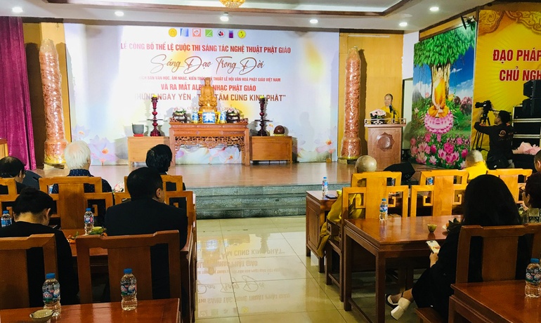Tuy nhiên, trong suốt chiều dài lịch sử, Phật giáo Việt Nam cũng như đời sống văn hóa của đất nước đã trải qua nhiều biến động, thăng trầm do chiến tranh và những ảnh hưởng từ các dòng chảy văn hóa bên ngoài. Điều đó đặt ra yêu cầu cần nghiên cứu, định hình những chuẩn mực văn hóa phù hợp với tinh thần Chánh pháp của đạo Phật, đồng thời thích ứng với bối cảnh xã hội hiện đại. Trong những năm gần đây, công tác tổ chức các hoạt động văn hóa, lễ hội Phật giáo ngày càng được quan tâm. Bên cạnh nhiều lễ hội được tổ chức bài bản, trang nghiêm, vẫn còn một số nơi chưa thật sự chuẩn mực. Vì vậy, Ban Văn hóa T.Ư mong muốn phối hợp với các nhà khoa học, nhà nghiên cứu và các cơ quan chuyên môn để xây dựng một mô hình chuẩn cho các hoạt động lễ hội Phật giáo. Theo đó, mỗi lễ hội Phật giáo đều có hai phần chính: phần lễ và phần hội. Điều quan trọng là cả hai phần này phải truyền tải được tinh thần và thông điệp của Phật giáo đến với cộng đồng. Sau mỗi lễ hội, người tham dự cần cảm nhận được giá trị hướng thiện, nuôi dưỡng đời sống tinh thần và những chuẩn mực đạo đức tốt đẹp. “Để đạt được điều đó, việc xây dựng nội dung chương trình, ngôn ngữ sử dụng, kịch bản tổ chức và các hoạt động văn hóa đi kèm cần được nghiên cứu một cách cẩn trọng, bảo đảm phù hợp với tinh thần của Phật giáo cũng như truyền thống văn hóa dân tộc. Ban Văn hóa T.Ư kỳ vọng thông qua các hoạt động nghiên cứu, trao đổi học thuật và sáng tạo nghệ thuật, một mô hình chuẩn về lễ hội Phật giáo sẽ sớm được hình thành, góp phần phát huy giá trị văn hóa Phật giáo trong đời sống xã hội.”, Hòa thượng Thích Thọ Lạc nhấn mạnh. Cuộc thi "Sáng đạo trong đời 2026" mở rộng cho nhiều lĩnh vực sáng tác về Phật giáo Tại buổi lễ, Ban Tổ chức cũng chính thức công bố thể lệ cuộc thi sáng tác nghệ thuật Phật giáo "Sáng đạo trong đời 2026", nhằm hướng đến mục tiêu khuyến khích các nhạc sĩ, nghệ sĩ và những người yêu nghệ thuật sáng tạo các tác phẩm lấy cảm hứng từ giáo lý Phật giáo. Theo Ban Tổ chức, cuộc thi năm nay mở rộng cho nhiều lĩnh vực sáng tác, bao gồm: kịch bản văn học, âm nhạc, kiến trúc và mỹ thuật phục vụ lễ hội Phật giáo Việt Nam. Thông qua cuộc thi, Ban Văn hóa T.Ư mong muốn tìm kiếm và tôn vinh những tác phẩm nghệ thuật mang giá trị nhân văn sâu sắc, phản ánh tinh thần Phật giáo gắn bó với đời sống và văn hóa dân tộc.
