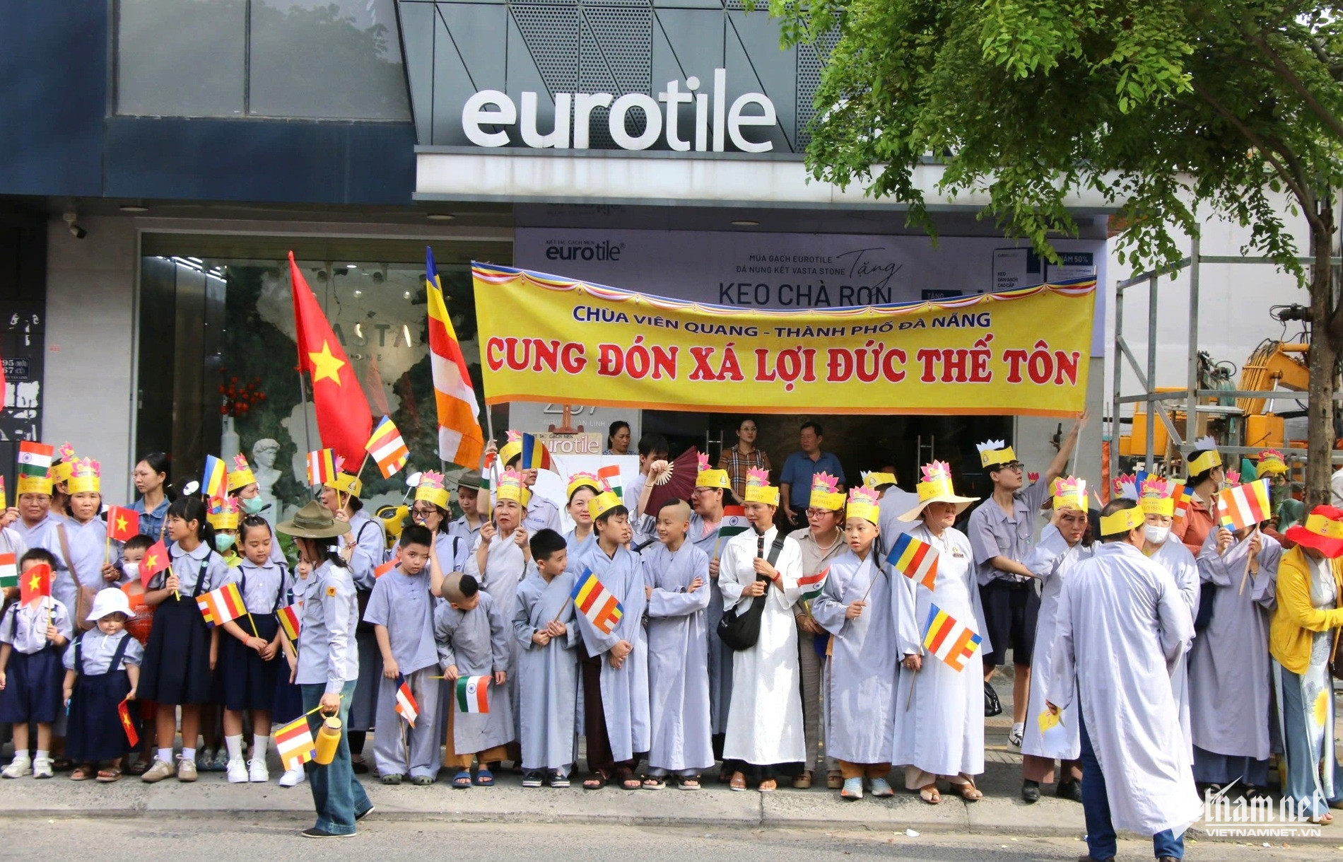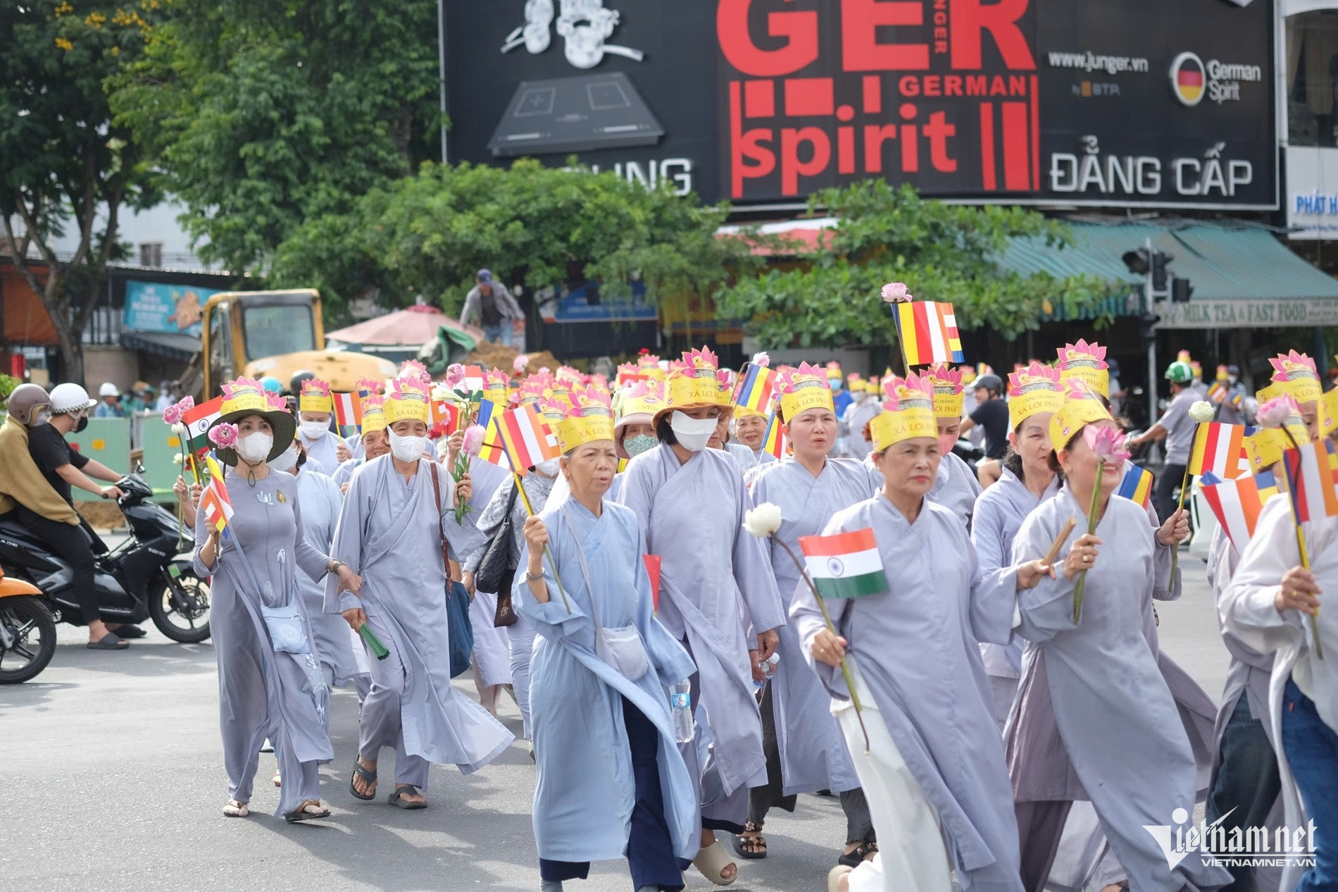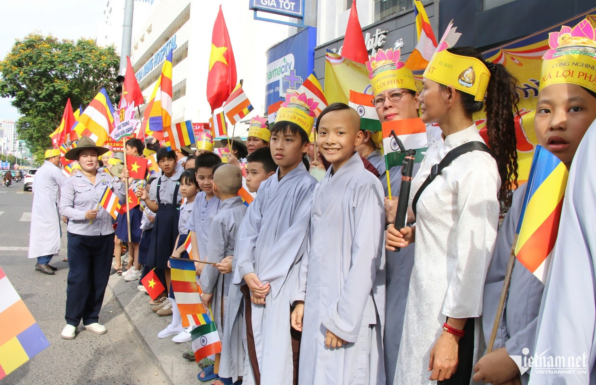 Hàng nghìn người dân Đà Nẵng di chuyển theo đoàn đón xá lợi Đức Phật trong không khí linh thiêng.