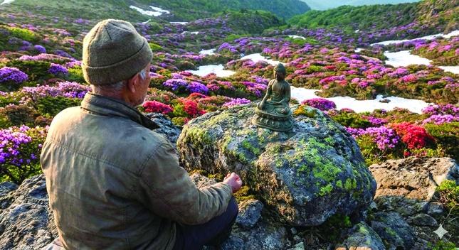 Sau 2 giờ vật lộn với từng phiến đá, khi bò, khi trườn, ông Ken leo lên được đỉnh khi trời vừa hoàng hôn. Thả chiếc ba-lô nặng nề trên vai xuống, nhìn cánh rừng bạt ngàn vô tận bên dưới, ông mỉm cười sung sướng đã đến được nơi ông từng đến hơn 40 năm về trước. Ông Ken cắm lều, ăn nhẹ buổi tối, đốt bếp lửa nhỏ rồi ngắm nhìn bầu trời đầy sao sáng lung linh giữa tiếng gió núi lồng lộng… Sáng sớm ông Ken thức dậy khi trời vừa ửng hồng. Lấy trong ba-lô tấm bạt và bức tượng Phật nhỏ bằng đồng được đựng trong hộp giấy, ông bước ra khỏi lều. Ông trân trọng đặt tượng Phật trên tảng đá to rồi trải tấm bạt ngồi xuống. Trên đỉnh núi cao hùng vĩ giữa không gian thanh tịnh tinh khiết, ông Ken chắp tay thành kính trước ngực, thở nhẹ, thở sâu. Ông nhìn Phật với đôi mắt cung kính tràn đầy yêu thương. Thiết tha ông khẽ nói: “Cảm ơn Phật đã cho con những lời dạy vượt qua bao khổ đau, trở ngại trong cuộc đời. Giúp con có cuộc sống thăng bằng, hài hòa cùng mọi người, mọi loài…”. Giọng ông Ken trầm hùng tụng Bát-nhã Tâm kinh: “... vì không chướng ngại nên không sợ hãi, xa lìa mộng tưởng điên đảo, rốt ráo Niết-bàn…Yết-đế yết-đế ba-la-yết-đế… hãy vượt qua, vượt qua bến bờ kia…”. Rừng hoa đỗ quyên bên dưới đỉnh núi rực rỡ sắc màu đẹp lạ lùng trong ánh nắng buổi sáng sớm đầu xuân. Huyền Lam (Hoa Kỳ)
