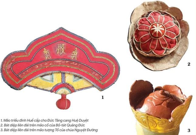 Ví dụ như tại Trung Quốc có tác phẩm của Trương Thắng Ôn (张胜温) thời Đại Lý (1180 sau Tây lịch); tranh dùng trong “Thủy-Lục hội” thời nhà Minh ở Bảo tàng Bắc Kinh; tại Hàn Quốc có Bảo vật quốc gia “Hoa Nghiêm tự Linh Sơn hội đối Phật tránh” thời Joseon,... Bên cạnh đó, một số hình ảnh chụp ở thời cận đại mà chúng ta có thể tiếp cận được ghi lại các vị Tăng nhân vào cuối thời Thanh hay thời Dân Quốc đều đội mão Tỳ-lô màu đỏ và văn vật hiện còn như mão Ngũ Phật thế kỷ XIV tại Bảo tàng Mỹ thuật Metropolitan (Hoa Kỳ), mão ở Cửu Hoa Sơn (Trung Quốc) của ngài Kim Địa Tạng thời Thanh, mão thời Dân Quốc ở Bảo tàng Đài Loan,... Ở Việt Nam, các tôn tượng như Đức Thánh Hiền, Bồ-tát Địa Tạng,... từ triều Lê, Nguyễn đều đa phần đội mão Liên Hoa Thất Phật, Tỳ-lô cũng xuất hiện với màu đỏ. Điều này chỉ xét đối với những trường hợp tượng sơn màu và không tính tượng đồng hoặc thếp vàng hoàn toàn. Hay những hình ảnh các vị Hòa thượng được chụp trước năm 1945 như: Hòa thượng Thanh Thao (Hà Nội), Hòa thượng Thanh Đức (Hà Nội), Hòa thượng Tịnh Nhãn (Huế), Hòa thượng Phước Thông (Quảng Nam), Hòa thượng Chí Bảo (Bình Định), Hòa thượng Từ Vân (Kon Tum), Hòa thượng Hoằng Nghĩa (Sài Gòn), Hòa thượng Từ Nhẫn (Long An),... đều đội mão Tỳ-lô hay Thất Phật với thuần chất màu đỏ và không có sự xuất hiện màu vàng hay những màu khác. Khảo sát các văn vật hiện còn như: Mão Liên Hoa của Tổ Xiển Pháp, Tổ Đông Tân, mão Tỳ-lô của Bồ-tát Quảng Đức, Thiền sư Phổ Thoại.... cũng đều cho thấy ngày xưa các loại mão Tỳ-lô hầu như chỉ có màu đỏ và không có màu khác.
