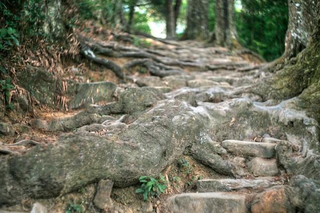 | | Sự tình cờ của tạo hóa đã biến rễ tùng trở thành bậc thang nâng đỡ bước chân của vô số lượt khách hành hương trong hàng trăn năm qua |