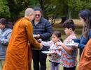 Dù cơn bão Nor’easter mang theo gió lạnh và mưa lớn, sáng Chủ nhật, 12-10 vừa qua, đông đảo Phật tử và thiện hữu tri thức từ nhiều nơi vẫn không ngại thời tiết vân tập về tu viện Empty Cloud để sớt bát, cúng dường phẩm vật và tứ sự đến chư Tăng Ni.