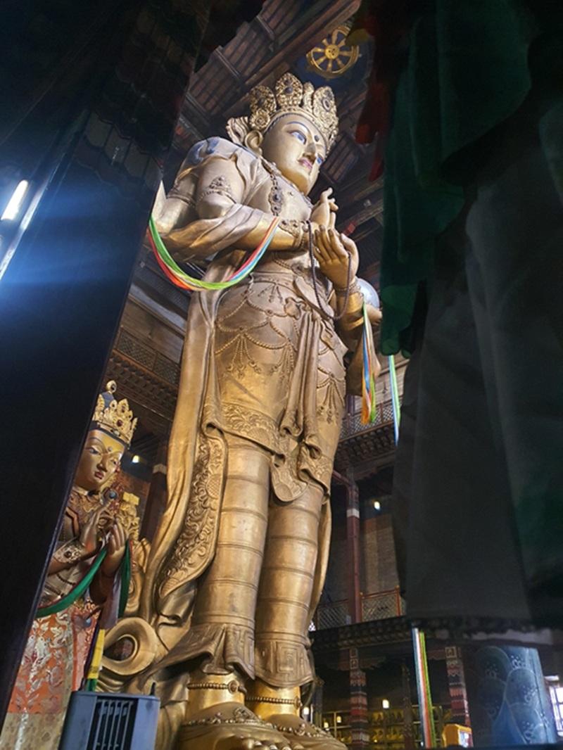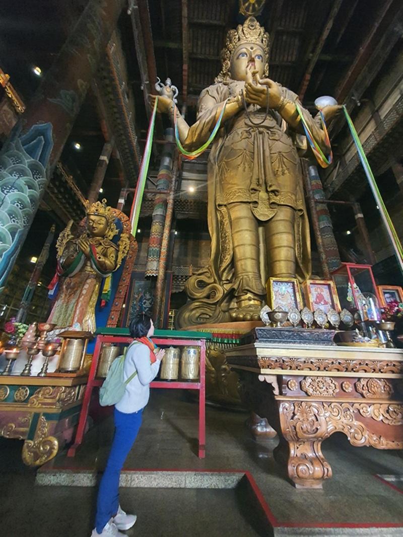 Tọa lạc trên ngọn đồi nhỏ phía Tây thủ đô Ulaanbaatar, Đại Tu viện Gandantegchinlen, hay Gandan Khiid, không chỉ là trung tâm Phật giáo lớn nhất Mông Cổ mà còn là một tượng đài kiên cường cho niềm tin tôn giáo bất diệt. Tên gọi trang nghiêm của tu viện mang ý nghĩa "Nơi tuyệt vời của Niềm vui Hoàn toàn" trong tiếng Tây Tạng, hoàn toàn phản ánh vai trò nơi này: một pháo đài tinh thần đã đứng vững qua bão tố lịch sử, trở thành linh hồn sống động cho sự hồi sinh tín ngưỡng của quốc gia thảo nguyên này. ![]() Phật giáo tại Mông Cổ mang một bản sắc độc đáo, là sự kết hợp hài hòa giữa tông phái Hoàng giáo (Gelugpa) của Phật giáo Tây Tạng (Lạt-ma giáo) với các yếu tố Shaman giáo bản địa. Sự hòa quyện này thể hiện qua triết lý nhân quả gắn liền với việc tôn kính và bảo vệ thiên nhiên, một đặc điểm sâu sắc của đời sống tâm linh du mục. Tuy nhiên, con đường của Phật giáo Mông Cổ không hề bằng phẳng. Dù hưng thịnh từ thế kỷ 16-17, thời kỳ huy hoàng đã bị gián đoạn bi thảm vào thập niên 1930. Chính quyền Mông Cổ dưới ảnh hưởng của Liên Xô đã thực hiện cuộc thanh trừng tôn giáo nghiêm trọng, phá hủy hàng trăm tu viện và sát hại hàng nghìn tăng sĩ. Mông Cổ chuyển sang dân chủ vào năm 1990, Phật giáo đã hồi sinh mạnh mẽ. Ngày nay, với hơn 51% dân số theo đạo, niềm tin tôn giáo đã chứng tỏ một sức sống mãnh liệt, không thể bị dập tắt. ![]() Trong bối cảnh lịch sử đầy biến cố đó, Tu viện Gandan nổi lên như một cột mốc. Được xây dựng vào năm 1838 dưới triều vua Bogd Khan, vị lãnh đạo tối cao lúc bấy giờ, Gandan từng là trung tâm tu học chính thức và là cái nôi của giáo lý Mật Tông và triết học Kim Cương thừa. Vào thời kỳ hoàng kim đầu thế kỷ XX, tu viện từng là nơi tu học của hơn 4.000 tăng sĩ. ![]() Sự kiên cường của Gandan thể hiện rõ nhất trong thời kỳ Xô Viết khi đó tu viện là một trong số rất ít cơ sở tôn giáo được phép hoạt động trở lại một cách hạn chế vào năm 1944. Sau năm 1990, nơi đây trở thành trung tâm tiên phong cho công cuộc hồi sinh toàn bộ hệ thống tu viện và niềm tin tôn giáo của đất nước. ![]() Ngày nay, Gandan là một quần thể kiến trúc đồ sộ, với khuôn viên rộng gần 10 hecta, bao gồm hơn 20 tòa điện thờ và học viện Phật giáo. Hàng trăm nhà sư và hàng nghìn phật tử vẫn đến tụng kinh và cầu nguyện mỗi ngày, khiến nơi đây luôn tràn đầy sinh khí tôn giáo. ![]() Điểm nhấn linh thiêng và đầy cảm xúc nhất của tu viện chính là Tôn tượng Quán Thế Âm (Avalokiteśvara) hay Bồ Tát Từ Bi (Megjid Janraisig Süm). ![]() Bức tượng hiện tại, được làm bằng đồng mạ vàng, nặng khoảng 90 tấn và có chiều cao ấn tượng 26.5 mét, tượng trưng cho sự hộ trì và độc lập của dân tộc Mông Cổ. Tuy nhiên, ít ai biết rằng bức tượng gốc (được xây dựng năm 1913) đã bị quân đội Liên Xô phá dỡ và nấu chảy thành vũ khí vào khoảng năm 1937-1938. Sự kiện này đã để lại một vết thương sâu sắc. Do đó, việc xây dựng lại bức tượng vào năm 1996 nhờ sự đóng góp của người dân và chính phủ, mô phỏng lại hoàn toàn tượng gốc, không chỉ là một công trình tôn giáo mà là một hành động tuyên bố về sự kiên cường không thể bị dập tắt của niềm tin Mông Cổ. Bức tượng này không chỉ là tượng Phật mà là đài tưởng niệm vinh quang cho sự phục sinh của Phật giáo Mông Cổ. Đó là minh chứng sống động cho tinh thần bất khuất, sự kiên cường trong niềm tin và khát vọng bảo tồn bản sắc văn hóa đã vượt qua đêm dài của chủ nghĩa vô thần. ![]() Chiêm ngưỡng Tôn tượng Quán Thế Âm tại Gandan là một trải nghiệm sâu sắc. Cảm xúc đầu tiên là sự choáng ngợp và lòng tôn kính tuyệt đối trước quy mô khổng lồ và vẻ uy nghiêm của Tôn tượng. Tuy nhiên, cảm xúc không dừng lại ở đó. Khi thấu hiểu câu chuyện bi thương và phục sinh, người chiêm bái sẽ cảm thấy một niềm hy vọng và sự xúc động mãnh liệt. Bức tượng tái thiết là minh chứng sống động cho tinh thần bất khuất, vượt qua đêm dài vô thần để giữ gìn bản sắc. ![]() Đứng trong "Trái Tim Hồi Sinh" của Phật giáo Mông Cổ, cảm nhận được làn sóng hơi ấm của hàng triệu phật tử trong quá khứ và hiện tại. Mỗi vòng kinh luân được xoay, mỗi lời tụng niệm của các Lạt-ma xung quanh và đặc biệt là ánh mắt nhân từ của Megjid Janraisig, đều mang lại một sự bình an nội tâm sâu sắc. Bức tượng đại diện cho lòng từ bi, nhắc nhở người chiêm bái về giáo lý nhân quả, về mối quan hệ giữa con người và thiên nhiên (một nét đặc trưng của Phật giáo Mông Cổ kết hợp với Shaman giáo). Gandan không chỉ là một hành trình tham quan, mà là một trải nghiệm tâm linh sâu sắc, nơi vẻ đẹp mỹ thuật hòa quyện với bi thương lịch sử và niềm hy vọng phục sinh. Đó là cảm xúc hỗn hợp của sự ngưỡng mộ, xúc động và thanh thản, khẳng định vị trí Gandan Khiid 