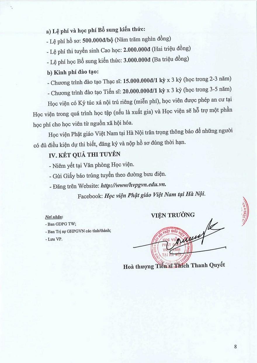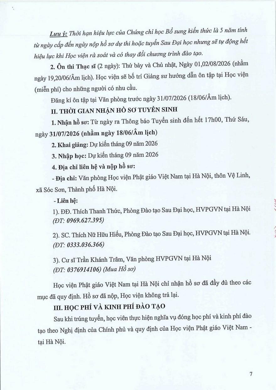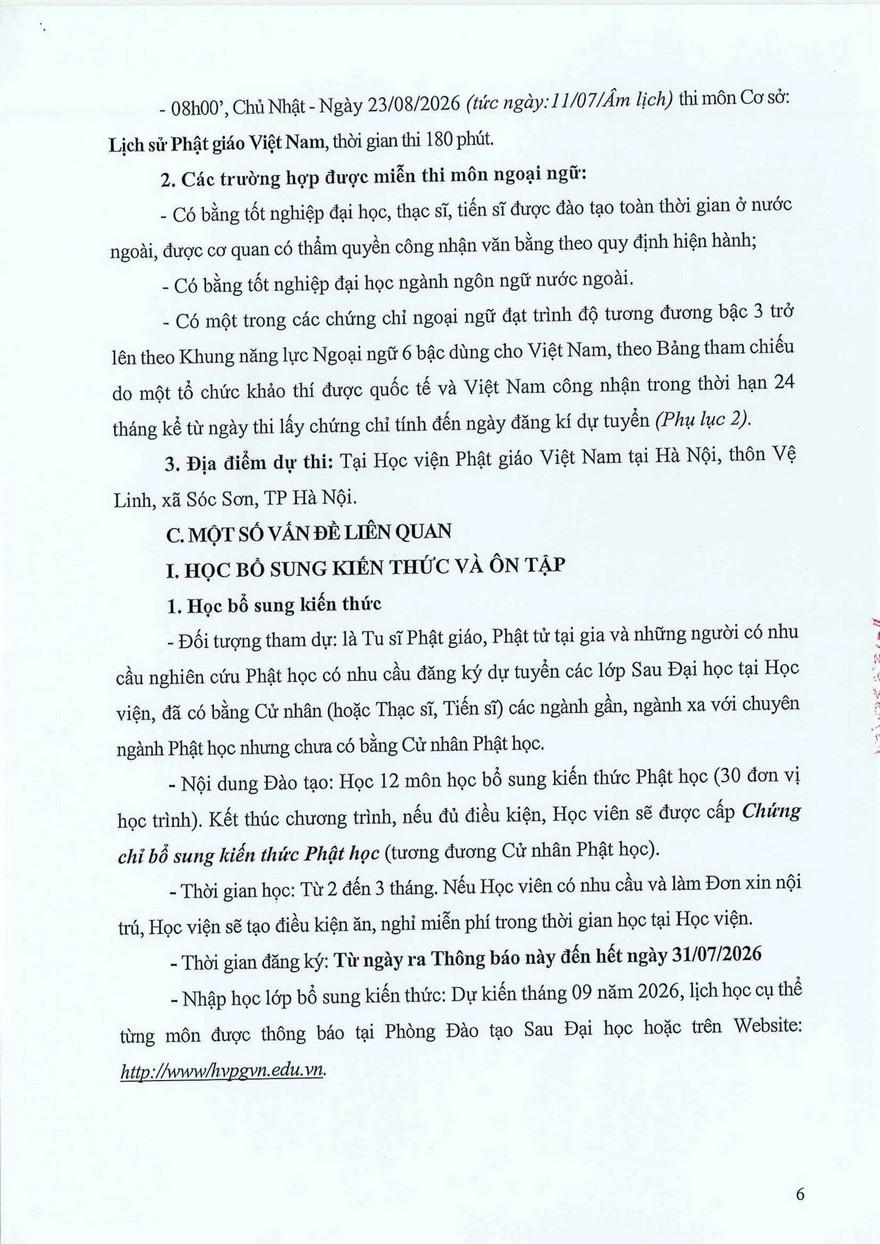 (PGNĐ) - Học viện Phật giáo Việt Nam tại Hà Nội thông báo tuyển sinh Thạc sĩ và Tiến sĩ Phật học năm 2026.