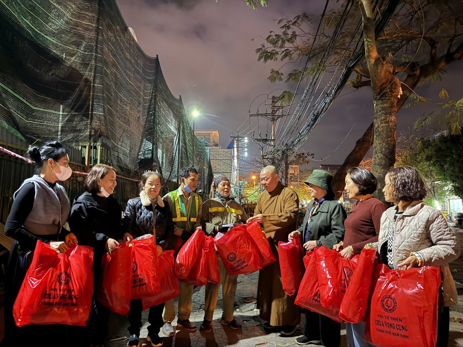 (PGNĐ) - Tối ngày 15/02/2026 (tức ngày 28/12/Ất Tỵ), Hội Từ thiện chùa Vọng Cung đã đi thăm hỏi, và trao tặng quà Tết cho các anh, chị, lao công em lao công, quét dọn đường phố, trên địa bàn phường Nam Định và một số phường lân cận.