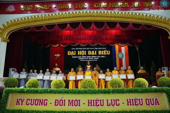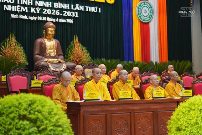 Ban Trị sự GHPGVN tỉnh Ninh Bình cũng đã tặng bức tranh kỷ niệm và bày tỏ lòng tri ân đối với chư tôn đức có nhiều đóng góp cho Phật giáo tỉnh nhiệm kỳ qua. Thượng tọa Thích Thanh Tòng, Phó Chánh Thư ký, Phó Chánh Văn phòng Ban Trị sự trình dự thảo Nghị quyết Đại hội đại biểu Phật giáo tỉnh Ninh Bình lần thứ I. Cũng trong phiên làm việc chiều 9-4, đại hội được lắng nghe 2 bài tham luận: Nâng cao hiệu quả công tác Tăng sự trong giai đoạn ổn định tổ chức và phát triển Phật giáo tỉnh Ninh Bìnhcủa Thượng tọa Thích Thanh Tòng; Vai trò của chư Ni trẻ Phật giáo Ninh Bình trong thời đại mới của Sư cô Thích Như Hiếu, nêu lên ý kiến xây dựng Phật giáo tỉnh Ninh Bình trong giai đoạn phát triển và hội nhập. Sáng mai, 8 giờ ngày 10-4, sẽ diễn ra phiên làm việc chính thức của Đại hội đại biểu Phật giáo tỉnh Ninh Bình lần thứ I, nhiệm kỳ 2026-2031. Một số hình ảnh ghi nhận trong phiên họp trù bị Đại hội đại biểu Phật giáo tỉnh Ninh Bình lần thứ I, nhiệm kỳ 2026-2031, chiều ngày 9-4: