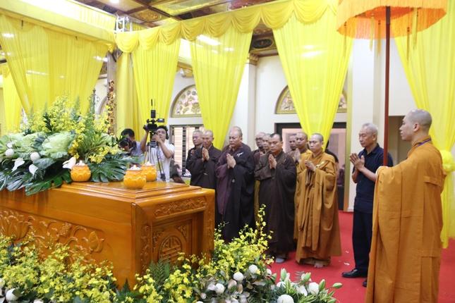 Sau khi cung nghinh chư tôn đức Tăng Ni quang lâm, Đại đức Thích Thanh Quang, Phó Trưởng ban kiêm Chánh Thư ký Ban Trị sự GHPGVN tỉnh Hưng Yên thay mặt môn đồ pháp quyến, hiếu quyến dâng lời tác bạch cầu thỉnh. Chư tôn đức đã làm lễ niêm hương bạch Phật, sái tịnh Giác linh đường, trì tụng Đại bi thập chú dưới sự xướng lễ của Thượng tọa Thích Minh Quang, Phó Trưởng ban Thường trực Ban Nghi lễ T.Ư; cầu siêu tiến Giác linh. Trong tiếng niệm Phật trầm hùng của đại chúng, môn đồ pháp quyến đã cung thỉnh nhục thân Trưởng lão Hòa thượng tân viên tịch từ thiền thất đến Giác linh đường cử hành lễ nhập kim quan theo nghi thức thiền môn.